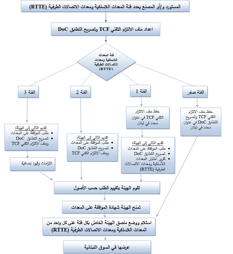 تعديل نظام الموافقة على المعدات – قرار رقم 3/2026 – الجريدة الرسمية (PDF)نظام الموافقة على المعدات – قرار رقم 5/2009 – الجريدة الرسمية (PDF)نظام الموافقة على المعدات – قرار رقم 5/2009 (HTML) نظام الموافقة على المعدات – قرار رقم 5/2009 (PDF)إجراءات التقدّم للحصول على الموافقة النوعيةأولاً: المستندات المطلوبة من قبل المستوردين أو المصنّعين لغرض التقدّم بطلب الحصول على الموافقة على معدات اللاسلكية ومعدات الاتصالات الطرفية (RTTE):